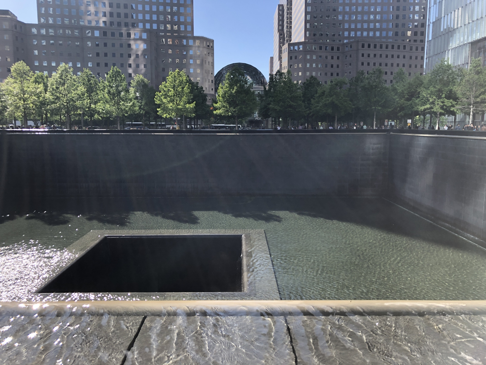 Ground Zero. I was speechless when I entered this beautiful area. The memorial water fountains a special tribute to all those who lost their lives and walking around gives you a moment to pay your respect with all their names engraved along the ledges.