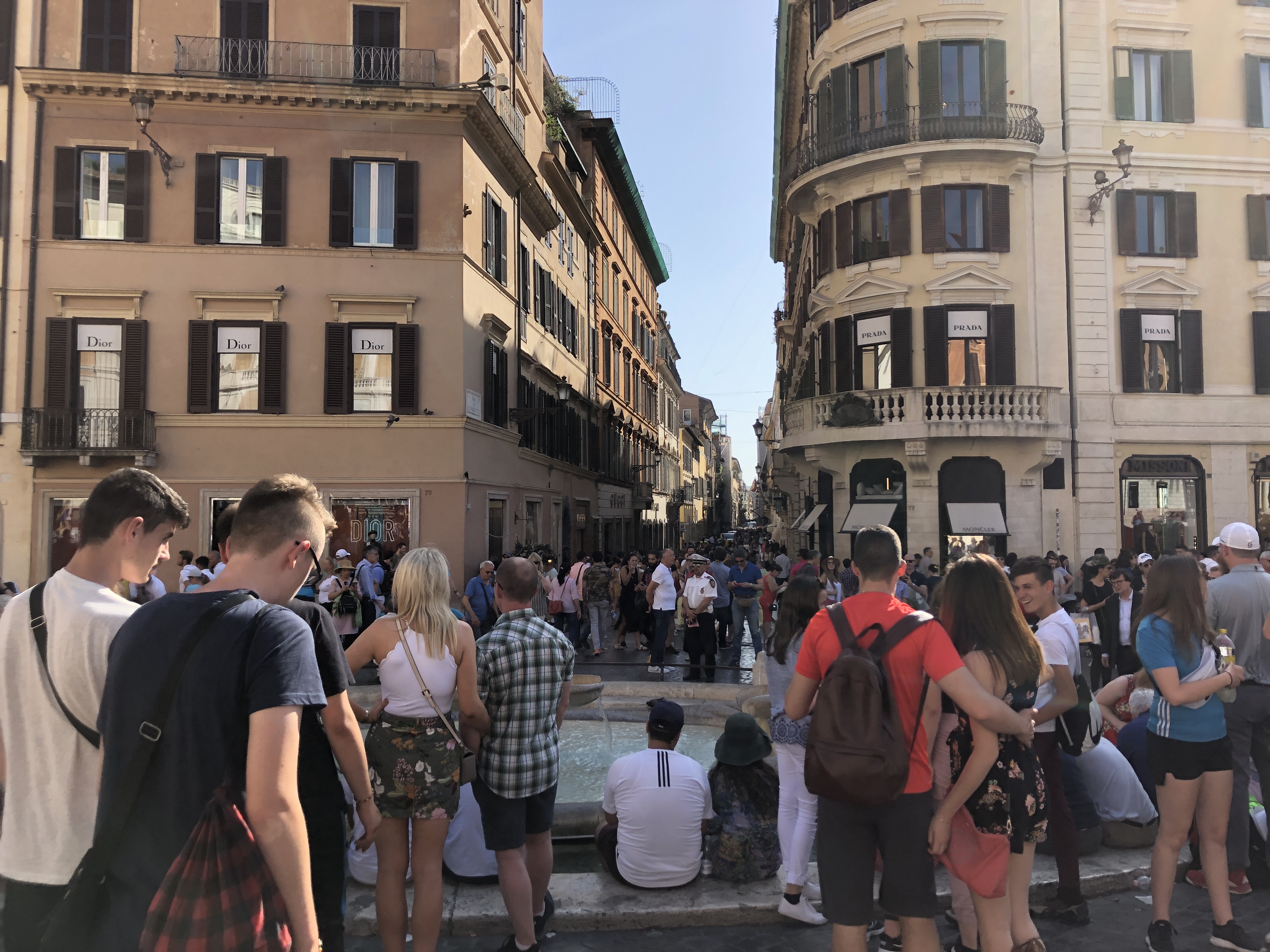 We were dripping with sweat in the heat so decided that taking the underground to the Spanish Steps was the best bet. We were so excited to see Kate, Giddy, Harry and Liv who were staying close by. We had a Campari and soda to catch up and enjoy the Rome atmosphere.