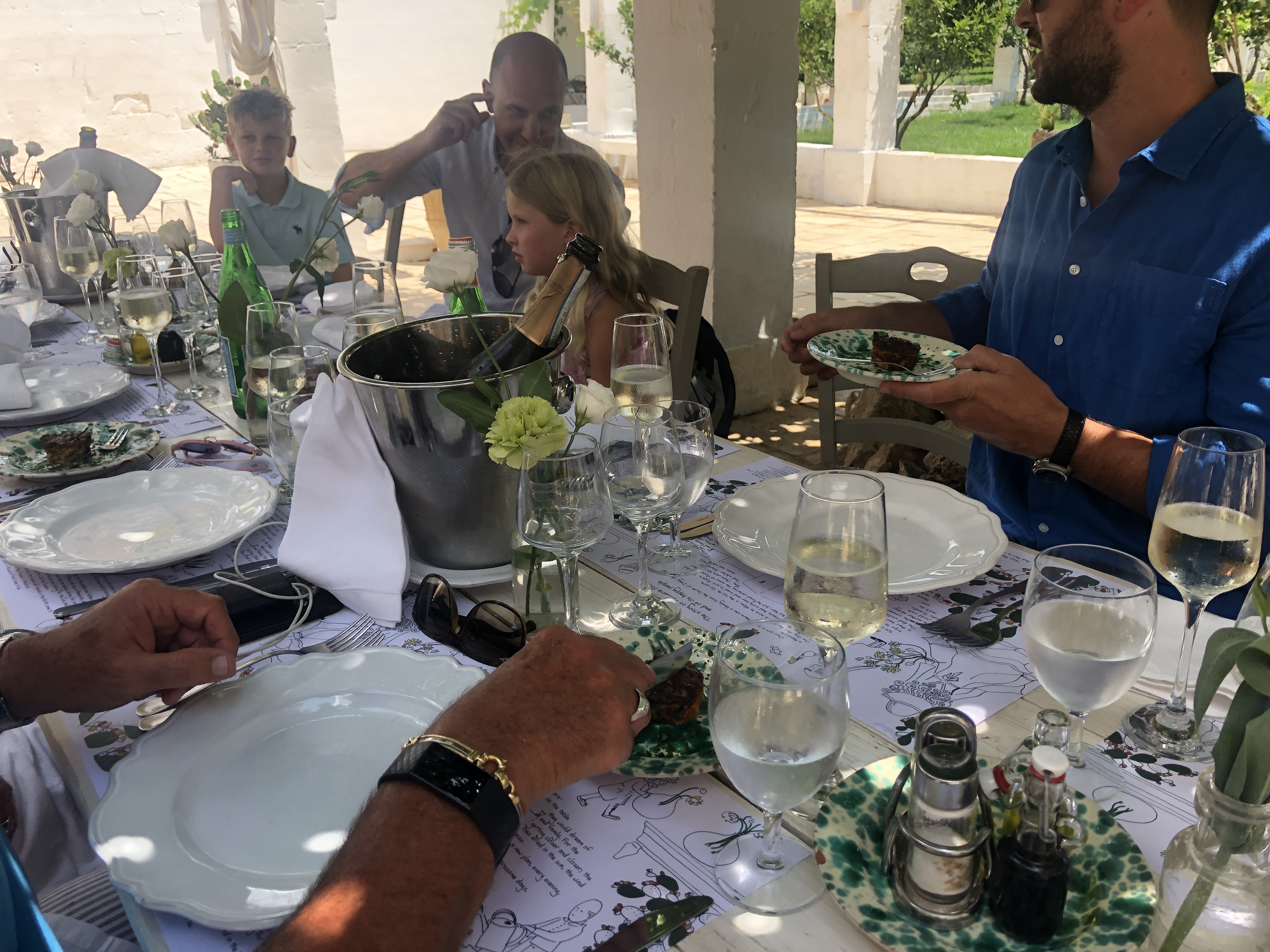 This holiday is to celebrate John’s birthday so lunch at for Masseria Potenti was the special day. It was an hour and a bit away and Emma was very organised in ordering a taxi van so we could all enjoy the vino! This place was a stunning estate, it is a family owned hotel and dining place with the cutest vintage shop to browse through at the end.