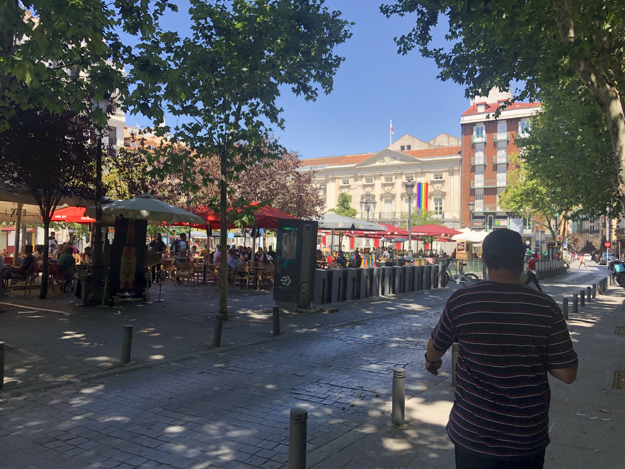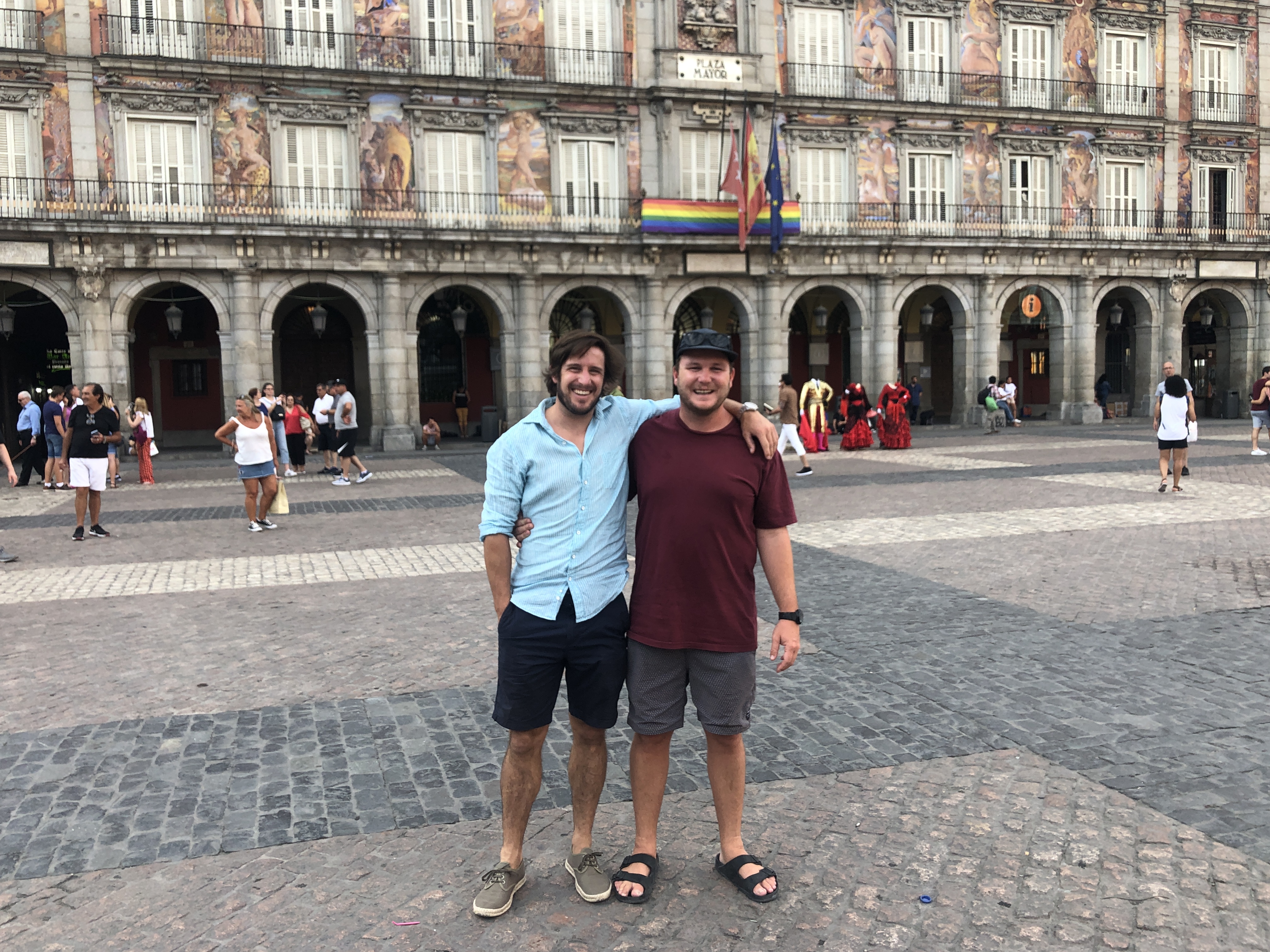 James has a friend who lives in Madrid and took us on a little tour. Sam (also known as Macca) took us to: Plaza de Jacinto benavente, Plaza mayor, Plaza de San miguel, Puerta del sol (pride parade concert), Picilagartos Sky bar (view of the city). Our last stop was a very very traditional and old school Spanish bar, quite a shock to the system seeing chicken bones on the floor but apparently thats a sign of a good place…… It was so much fun walking around the city and trying all of the tapas, it was also the Pride weekend and it was absolutely packed! A huge concert decorated the main square with many different stages dotted around the city. I honestly have never experienced such a vibrant place!